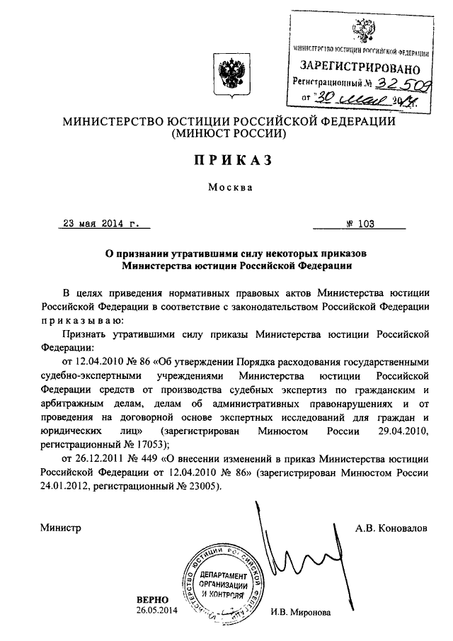 ПРИКАЗ Минюста РФ от 23.05.2014 N 103