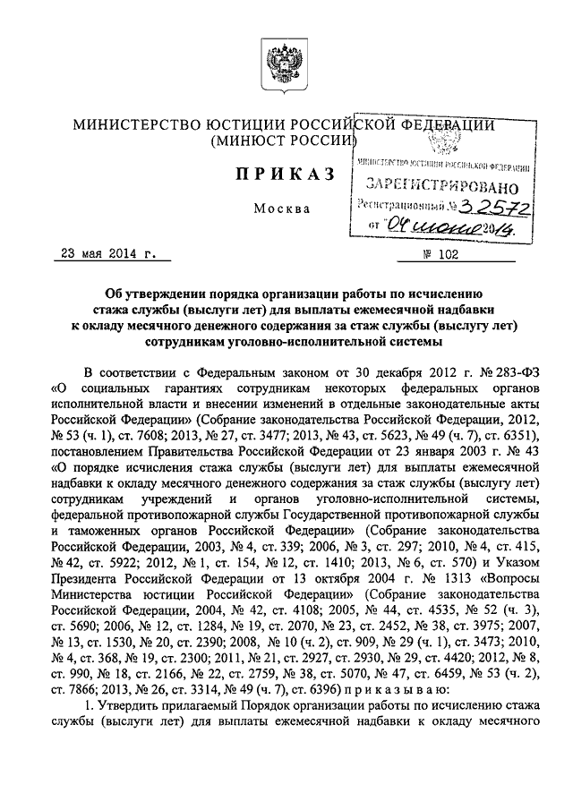 ПРИКАЗ Минюста РФ от 23.05.2014 N 102
