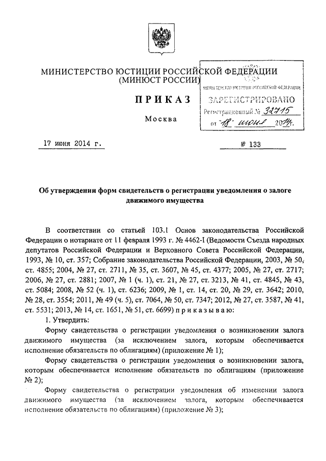 ПРИКАЗ Минюста РФ от 17.06.2014 N 133