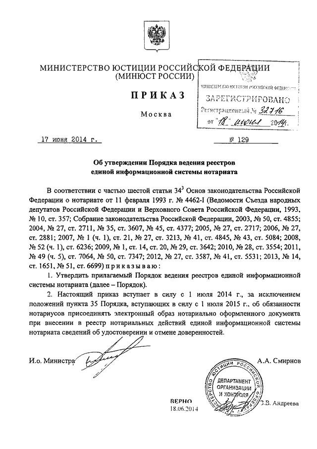 ПРИКАЗ Минюста РФ от 17.06.2014 N 129