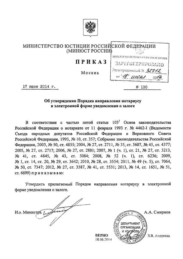 ПРИКАЗ Минюста РФ от 17.06.2014 N 130