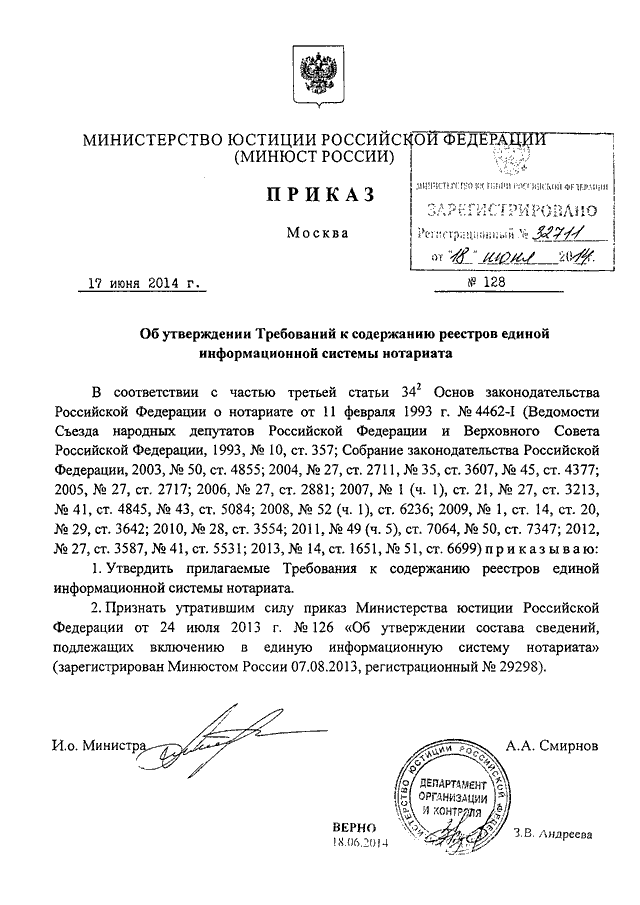 ПРИКАЗ Минюста РФ от 17.06.2014 N 128