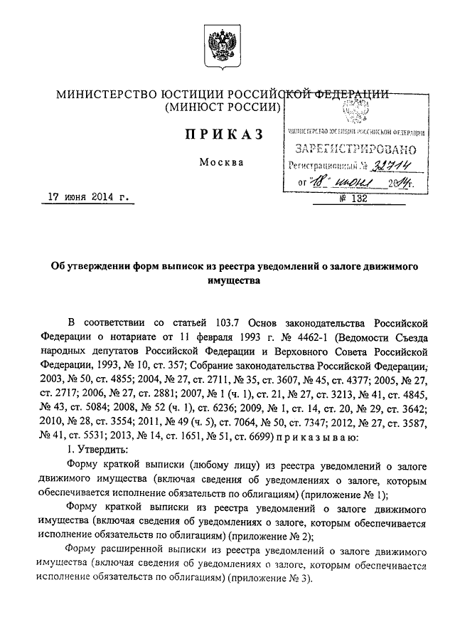 ПРИКАЗ Минюста РФ от 17.06.2014 N 132