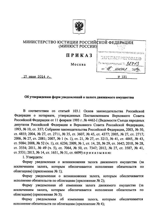 ПРИКАЗ Минюста РФ от 17.06.2014 N 131