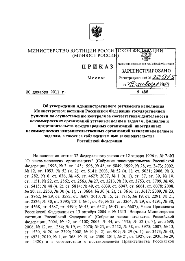 ПРИКАЗ Минюста РФ от 30.12.2011 N 456