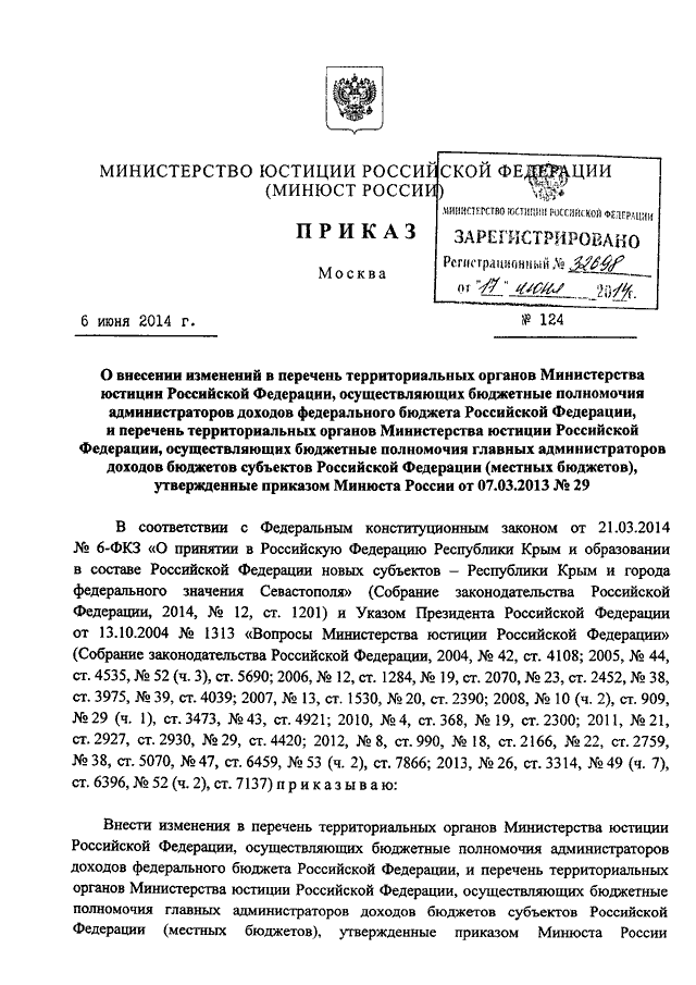 ПРИКАЗ Минюста РФ от 06.06.2014 N 124