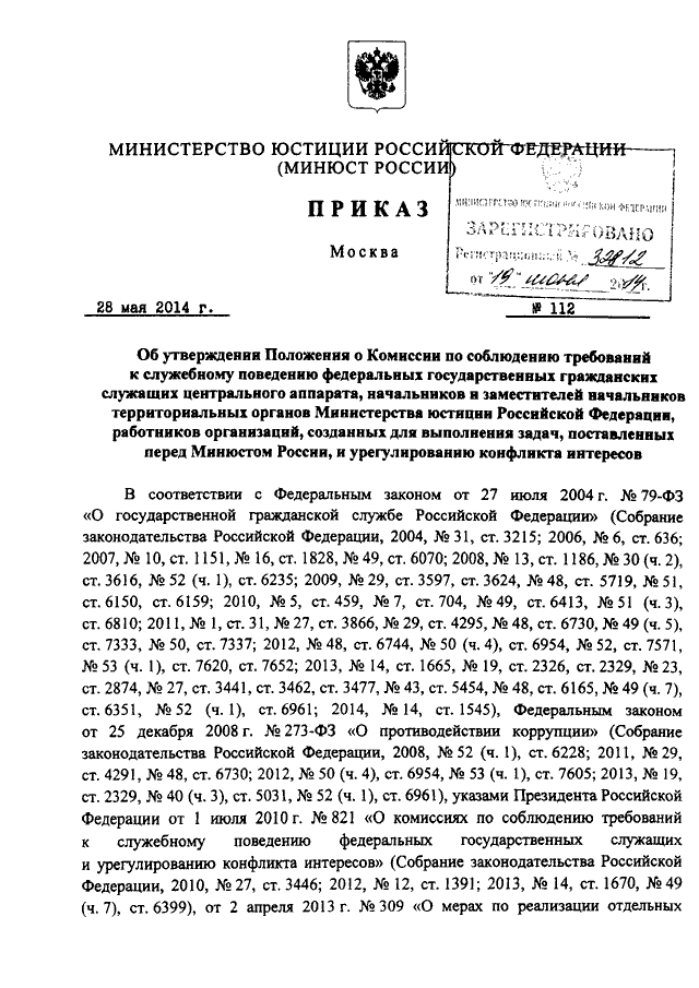 ПРИКАЗ Минюста РФ от 28.05.2014 N 112