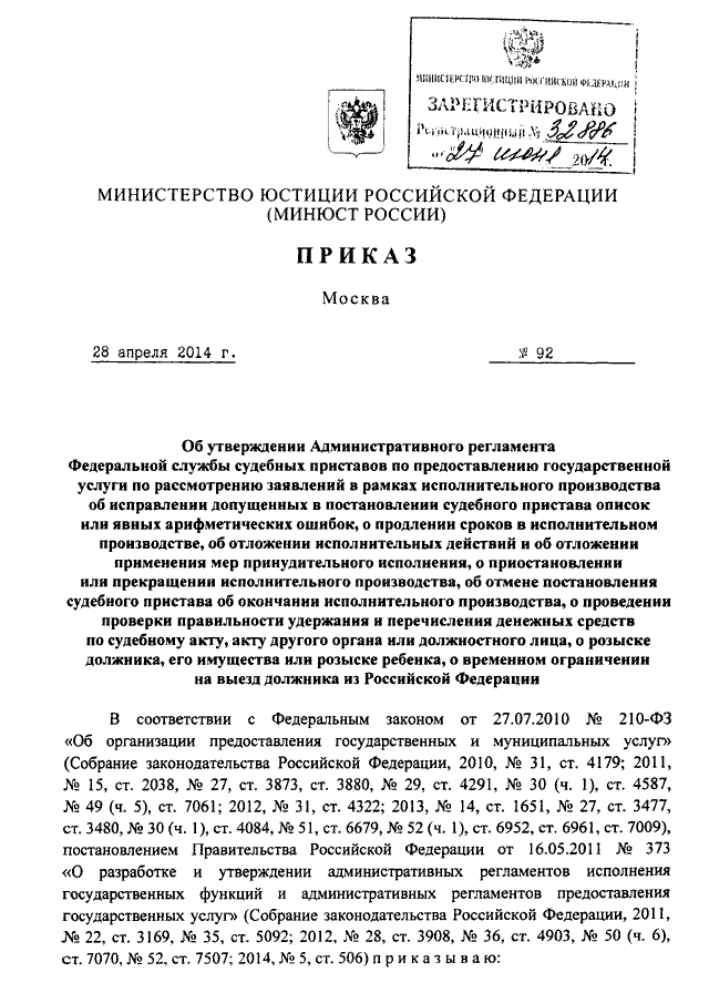 ПРИКАЗ Минюста РФ от 28.04.2014 N 92