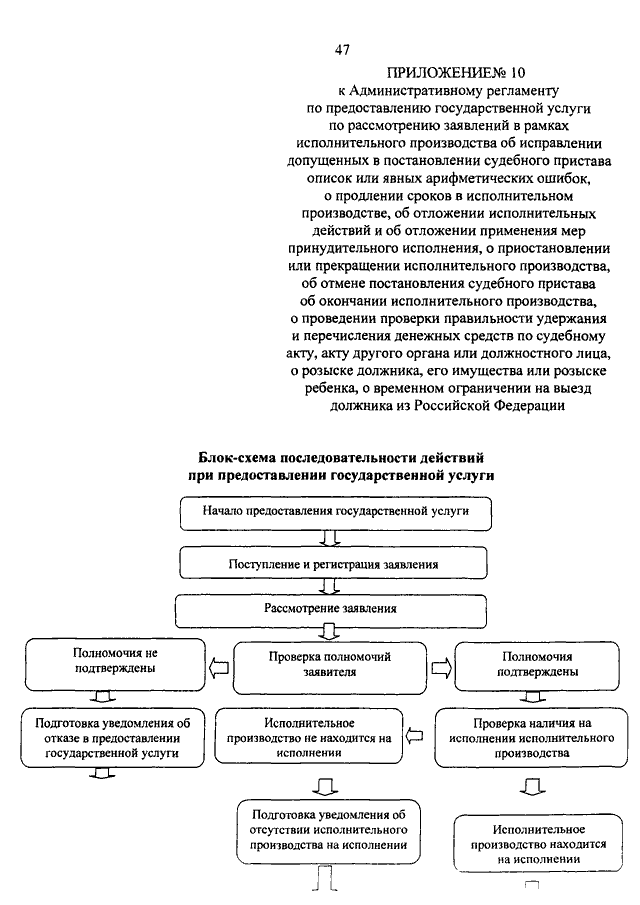 "ОБ УТВЕРЖДЕНИИ АДМИНИСТРАТИВНОГО РЕГЛАМЕНТА ФЕДЕРАЛЬНОЙ СЛУЖБЫ СУДЕБНЫХ ПРИСТАВОВ ПО ПРЕДОСТАВЛЕНИЮ ГОСУДАРСТВЕННОЙ УСЛУГИ ПО РАССМОТРЕНИЮ ЗАЯВЛЕНИЙ В РАМКАХ ИСПОЛНИТЕЛЬНОГО ПРОИЗВОДСТВА ОБ ИСПРАВЛЕНИИ ДОПУЩЕННЫХ В ПОСТАНОВЛЕНИИ СУДЕБНОГО ПРИСТАВА ОПИСОК ИЛИ ЯВНЫХ АРИФМЕТИЧЕСКИХ ОШИБОК, О ПРОДЛЕНИИ СРОКОВ В ИСПОЛНИТЕЛЬНОМ ПРОИЗВОДСТВЕ, ОБ ОТЛОЖЕНИИ ИСПОЛНИТЕЛЬНЫХ ДЕЙСТВИЙ И ОБ ОТЛОЖЕНИИ ПРИМЕНЕНИЯ МЕР ПРИНУДИТЕЛЬНОГО ИСПОЛНЕНИЯ, О ПРИОСТАНОВЛЕНИИ ИЛИ ПРЕКРАЩЕНИИ ИСПОЛНИТЕЛЬНОГО ПРОИЗВОДСТВА, ОБ ОТМЕНЕ ПОСТАНОВЛЕНИЯ СУДЕБНОГО ПРИСТАВА ОБ ОКОНЧАНИИ ИСПОЛНИТЕЛЬНОГО ПРОИЗВОДСТВА, О ПРОВЕДЕНИИ ПРОВЕРКИ ПРАВИЛЬНОСТИ УДЕРЖАНИЯ И ПЕРЕЧИСЛЕНИЯ ДЕНЕЖНЫХ СРЕДСТВ ПО СУДЕБНОМУ АКТУ, АКТУ ДРУГОГО ОРГАНА ИЛИ ДОЛЖНОСТНОГО ЛИЦА, О РОЗЫСКЕ ДОЛЖНИКА, ЕГО ИМУЩЕСТВА ИЛИ РОЗЫСКЕ РЕБЕНКА, О ВРЕМЕННОМ ОГРАНИЧЕНИИ НА ВЫЕЗД ДОЛЖНИКА ИЗ РОССИЙСКОЙ ФЕДЕРАЦИИ"