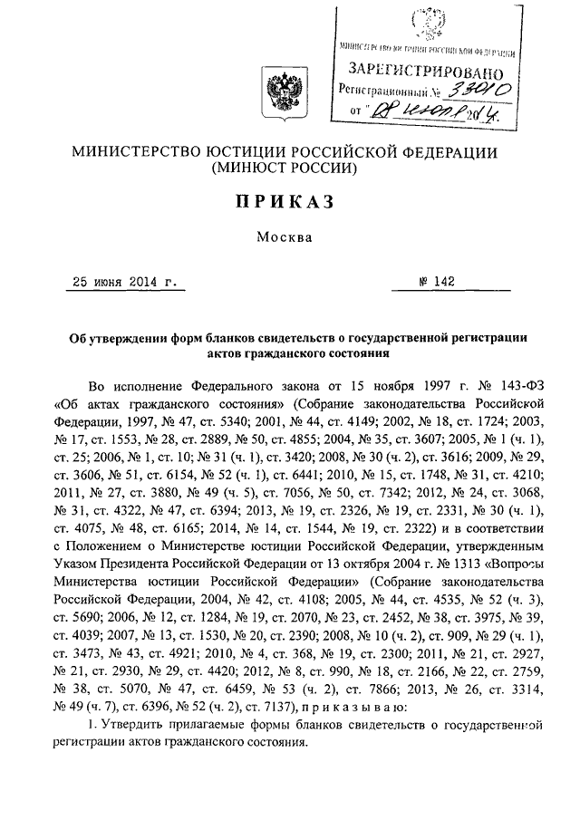 ПРИКАЗ Минюста РФ от 25.06.2014 N 142