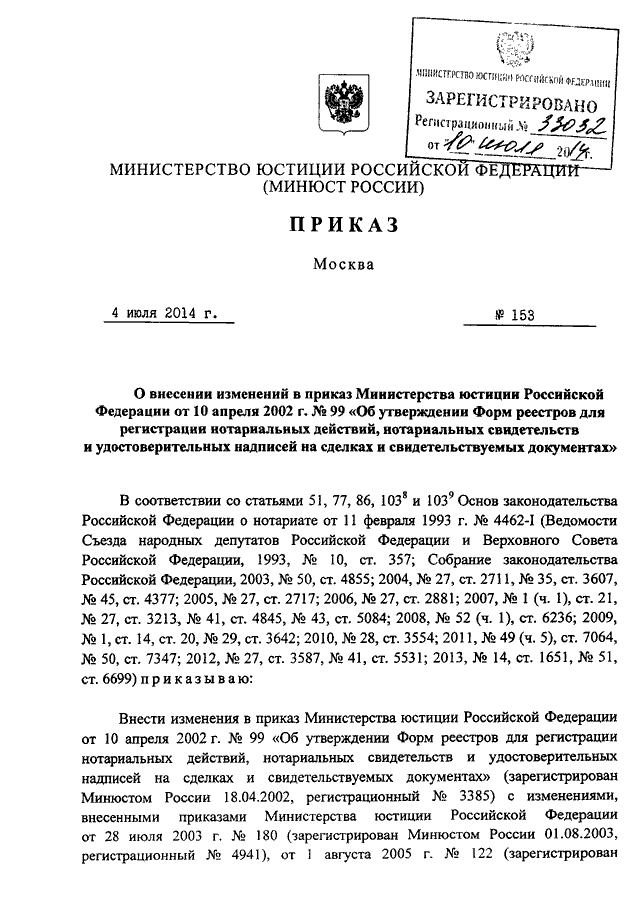 ПРИКАЗ Минюста РФ от 04.07.2014 N 153