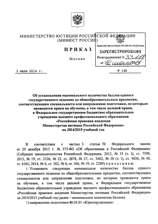 ПРИКАЗ Минюста РФ от 03.07.2014 N 148