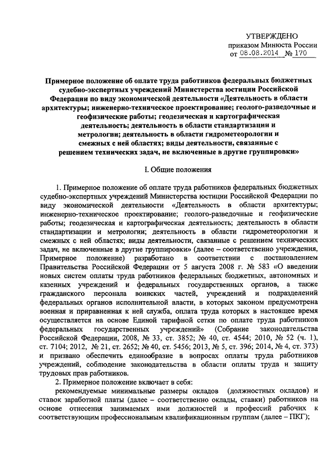 ПРИКАЗ Минюста РФ от 08.08.2014 N 170