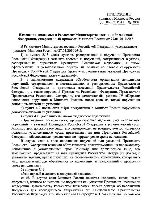ПРИКАЗ Минюста РФ от 05.09.2011 N 306
