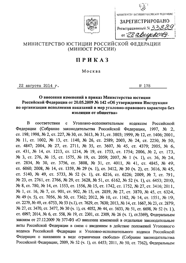 ПРИКАЗ Минюста РФ от 22.08.2014 N 178