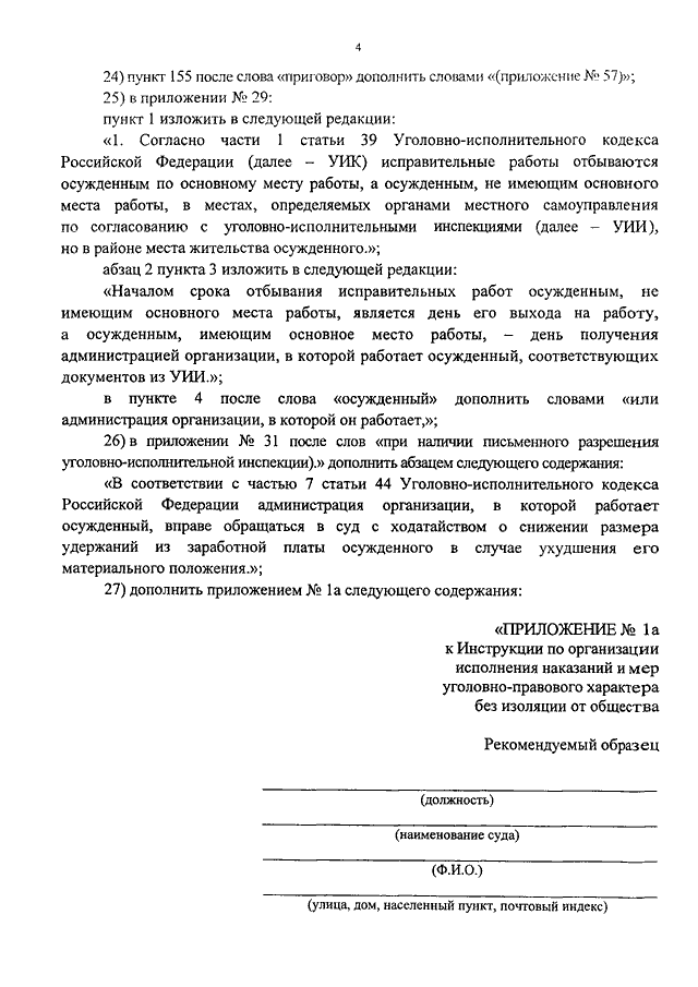 "О ВНЕСЕНИИ ИЗМЕНЕНИЙ В ПРИКАЗ МИНИСТЕРСТВА ЮСТИЦИИ РОССИЙСКОЙ ФЕДЕРАЦИИ ОТ 20.05.2009 N 142 "ОБ УТВЕРЖДЕНИИ ИНСТРУКЦИИ ПО ОРГАНИЗАЦИИ ИСПОЛНЕНИЯ НАКАЗАНИЙ И МЕР УГОЛОВНО - ПРАВОВОГО ХАРАКТЕРА БЕЗ ИЗОЛЯЦИИ ОТ ОБЩЕСТВА"