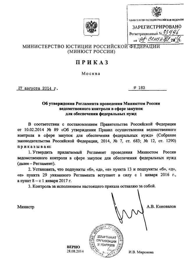 ПРИКАЗ Минюста РФ от 27.08.2014 N 183