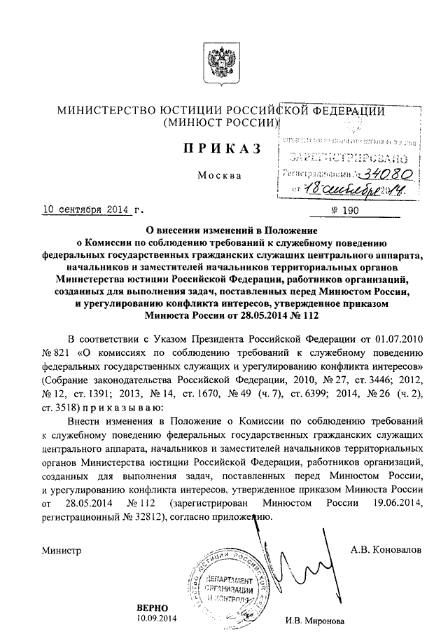 ПРИКАЗ Минюста РФ от 10.09.2014 N 190