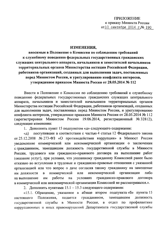 ПРИКАЗ Минюста РФ от 10.09.2014 N 190