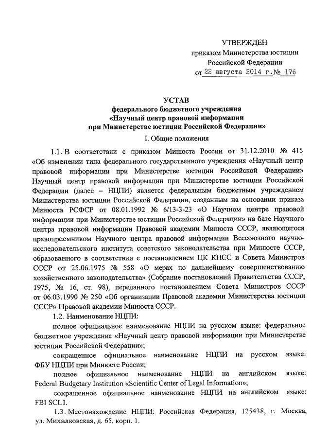 ПРИКАЗ Минюста РФ от 22.08.2014 N 176