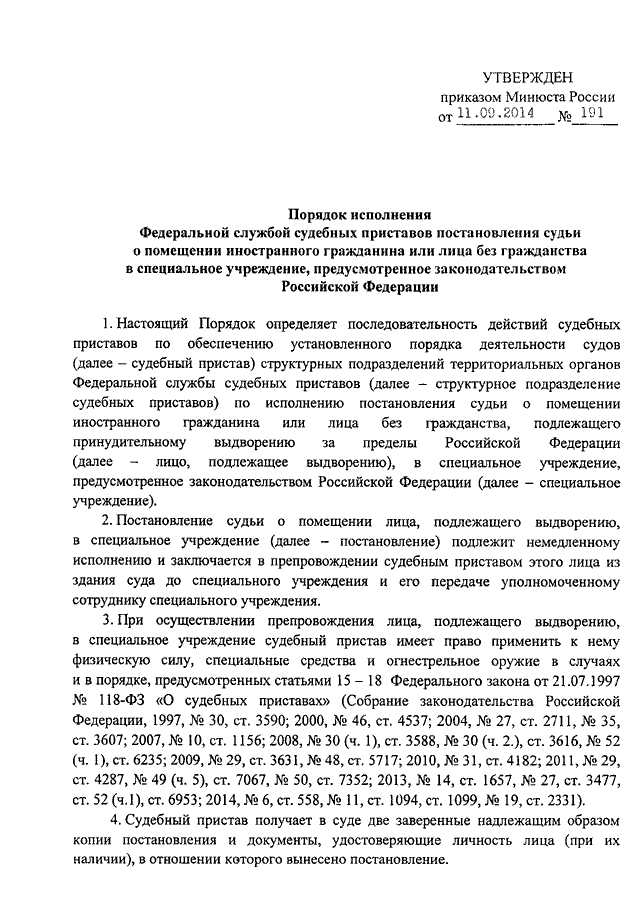 ПРИКАЗ Минюста РФ от 11.09.2014 N 191