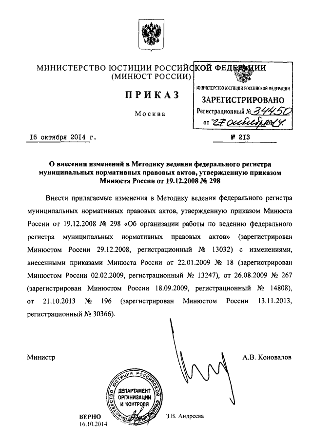 ПРИКАЗ Минюста РФ от 16.10.2014 N 213