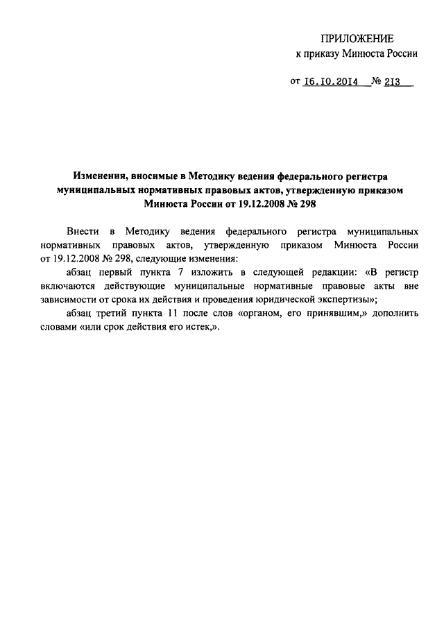 ПРИКАЗ Минюста РФ от 16.10.2014 N 213
