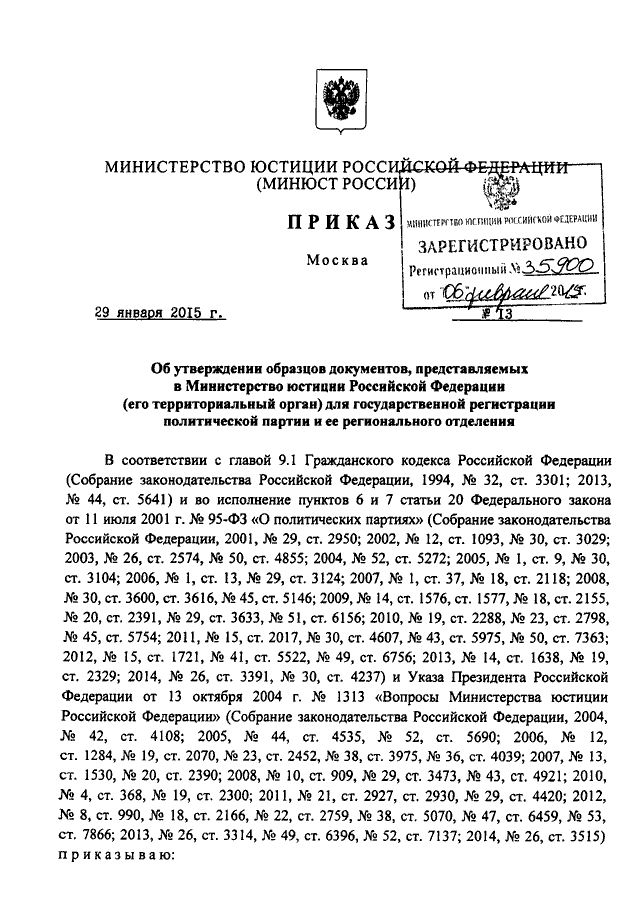 ПРИКАЗ Минюста РФ от 29.01.2015 N 13