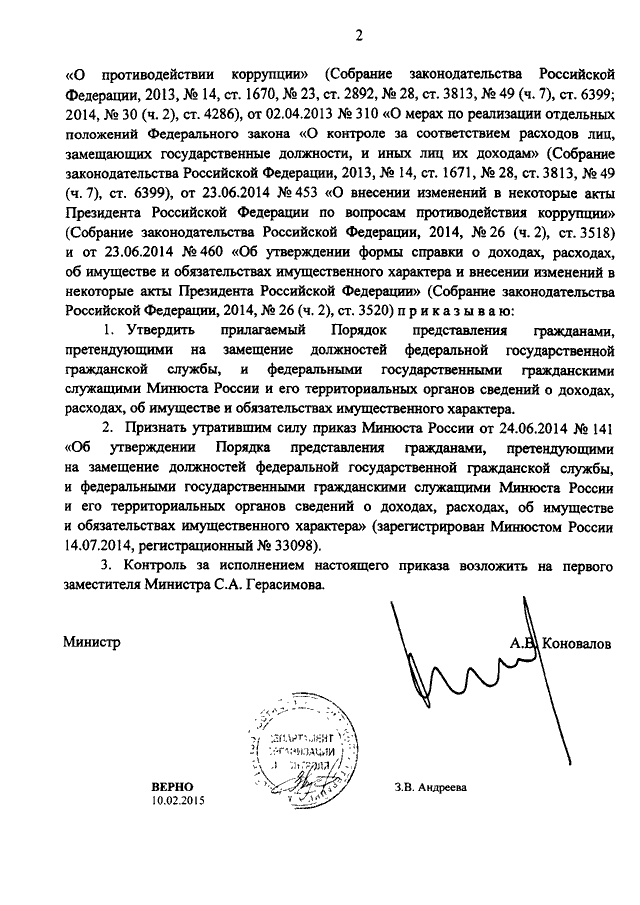 ПРИКАЗ Минюста РФ от 09.02.2015 N 27