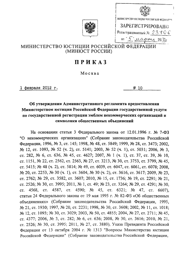 ПРИКАЗ Минюста РФ от 01.02.2012 N 10