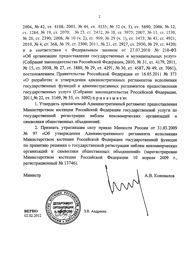 ПРИКАЗ Минюста РФ от 01.02.2012 N 10
