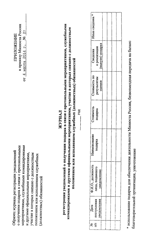 ПРИКАЗ Минюста РФ от 04.03.2014 N 27