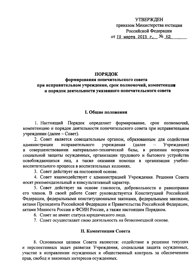 "ОБ УТВЕРЖДЕНИИ ПОРЯДКА ФОРМИРОВАНИЯ ПОПЕЧИТЕЛЬСКОГО СОВЕТА ПРИ ИСПРАВИТЕЛЬНОМ УЧРЕЖДЕНИИ, СРОКА ПОЛНОМОЧИЙ, КОМПЕТЕНЦИИ И ПОРЯДКА ДЕЯТЕЛЬНОСТИ УКАЗАННОГО ПОПЕЧИТЕЛЬСКОГО СОВЕТА"