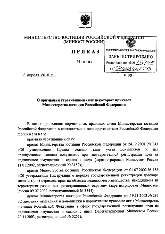 ПРИКАЗ Минюста РФ от 02.04.2015 N 80