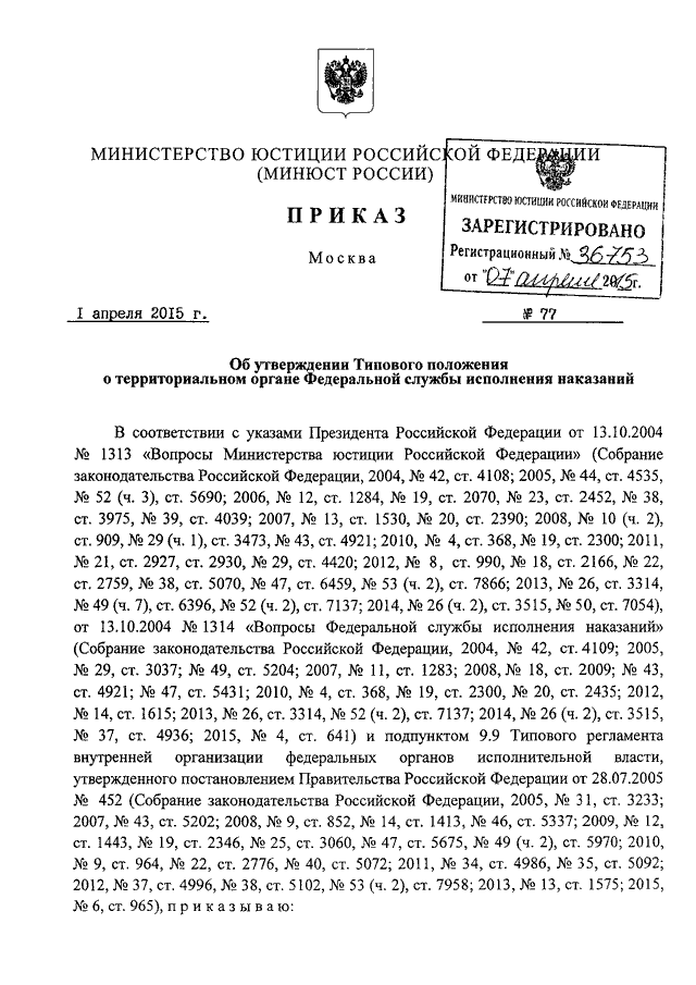 ПРИКАЗ Минюста РФ от 01.04.2015 N 77