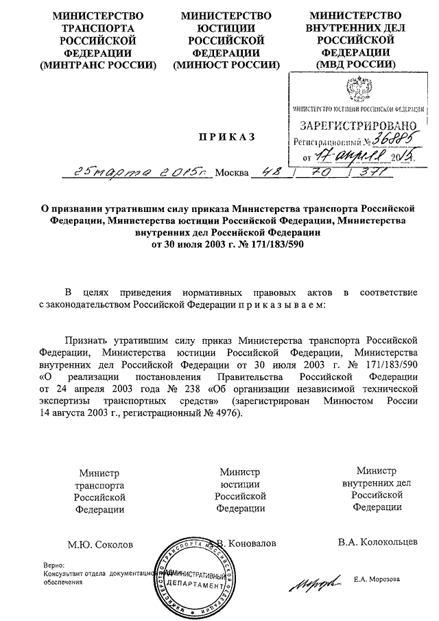 ПРИКАЗ Минтранса РФ N 48, Минюста РФ N 70, МВД РФ N 371 от