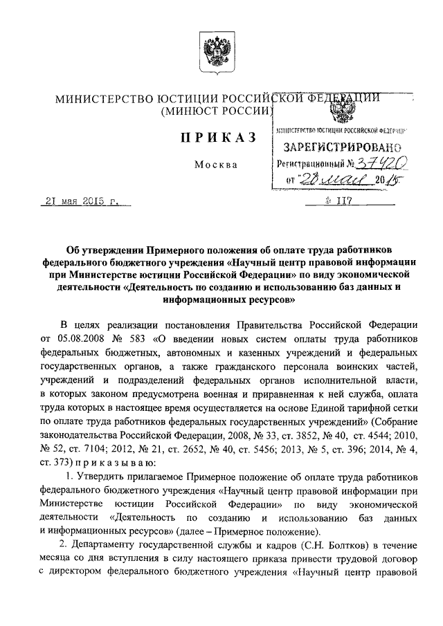 ПРИКАЗ Минюста РФ от 21.05.2015 N 117