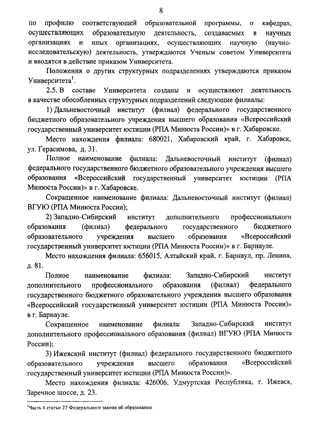 "ОБ УТВЕРЖДЕНИИ УСТАВА ФЕДЕРАЛЬНОГО ГОСУДАРСТВЕННОГО БЮДЖЕТНОГО ОБРАЗОВАТЕЛЬНОГО УЧРЕЖДЕНИЯ ВЫСШЕГО ОБРАЗОВАНИЯ "ВСЕРОССИЙСКИЙ ГОСУДАРСТВЕННЫЙ УНИВЕРСИТЕТ ЮСТИЦИИ (РПА МИНЮСТА РОССИИ)"