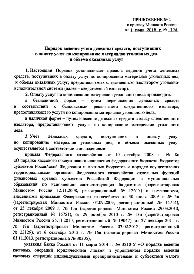 ПРИКАЗ Минюста РФ от 01.06.2015 N 124