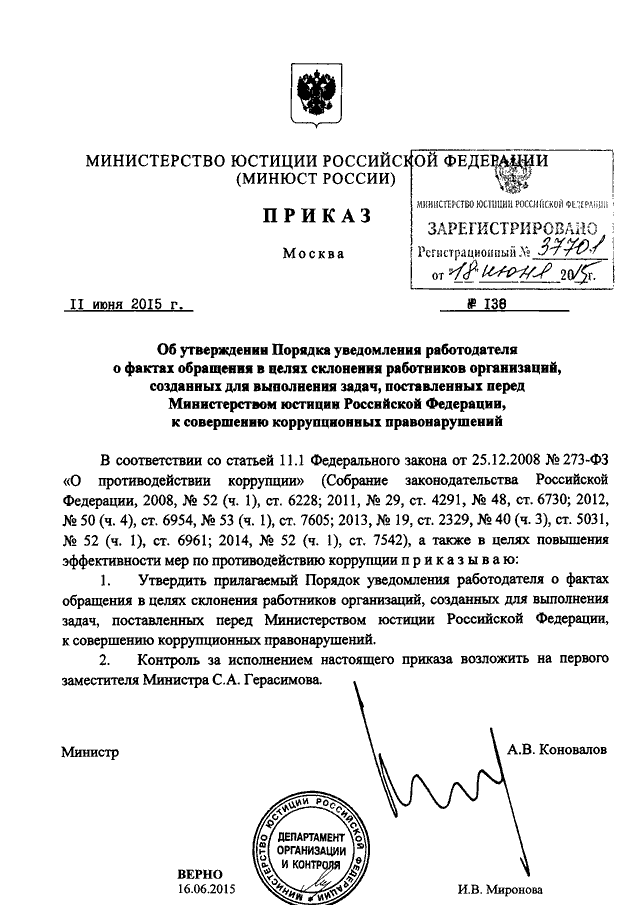 ПРИКАЗ Минюста РФ от 11.06.2015 N 138