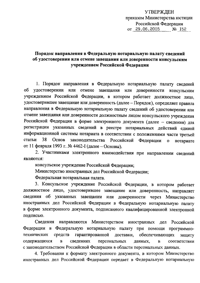 ПРИКАЗ Минюста РФ от 29.06.2015 N 152