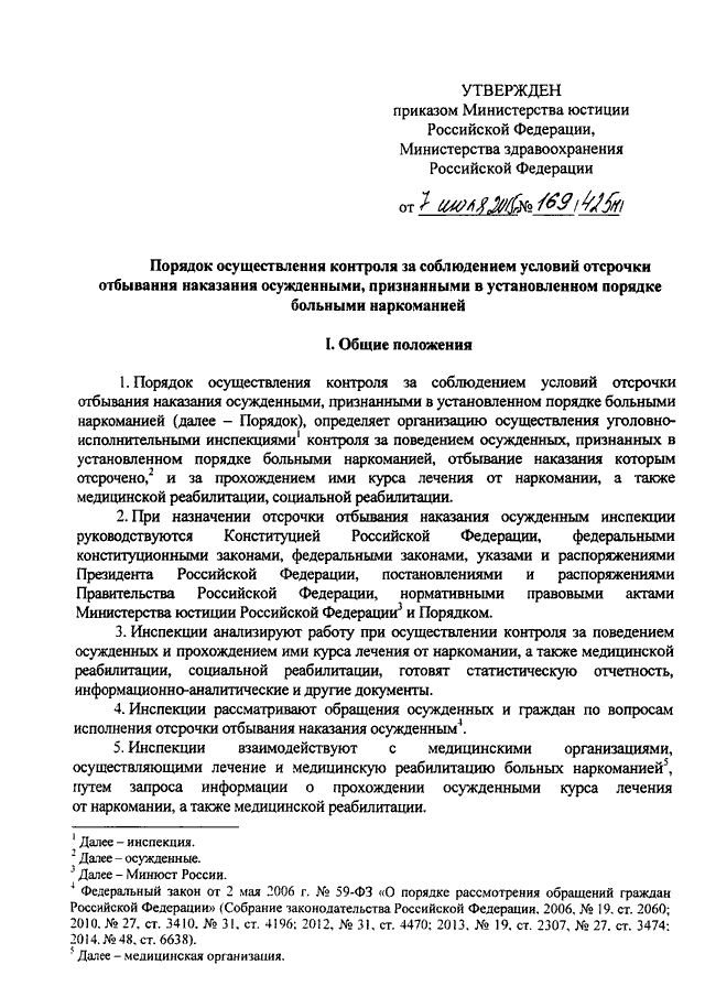 ПРИКАЗ Минюста РФ N 169, Минздрава РФ N 425н от 07.07.2015