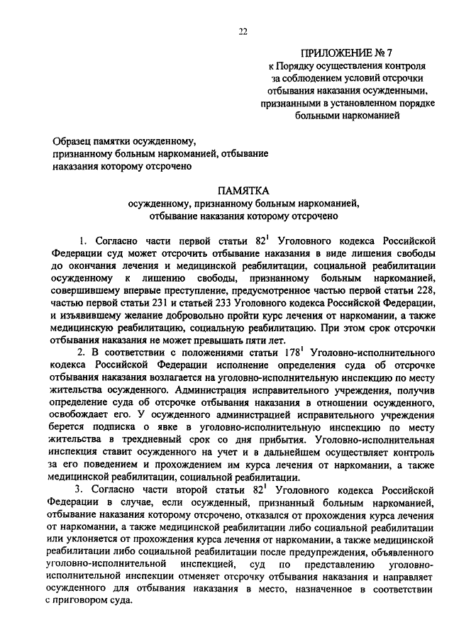 "ОБ УТВЕРЖДЕНИИ ПОРЯДКА ОСУЩЕСТВЛЕНИЯ КОНТРОЛЯ ЗА СОБЛЮДЕНИЕМ УСЛОВИЙ ОТСРОЧКИ ОТБЫВАНИЯ НАКАЗАНИЯ ОСУЖДЕННЫМИ, ПРИЗНАННЫМИ В УСТАНОВЛЕННОМ ПОРЯДКЕ БОЛЬНЫМИ НАРКОМАНИЕЙ"
