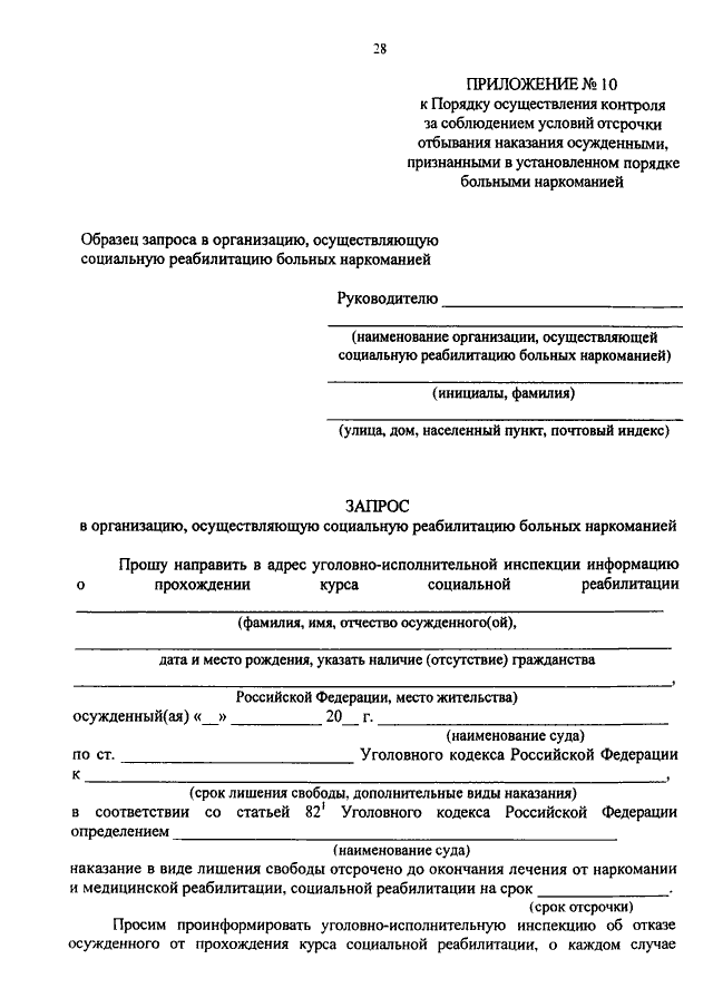 "ОБ УТВЕРЖДЕНИИ ПОРЯДКА ОСУЩЕСТВЛЕНИЯ КОНТРОЛЯ ЗА СОБЛЮДЕНИЕМ УСЛОВИЙ ОТСРОЧКИ ОТБЫВАНИЯ НАКАЗАНИЯ ОСУЖДЕННЫМИ, ПРИЗНАННЫМИ В УСТАНОВЛЕННОМ ПОРЯДКЕ БОЛЬНЫМИ НАРКОМАНИЕЙ"