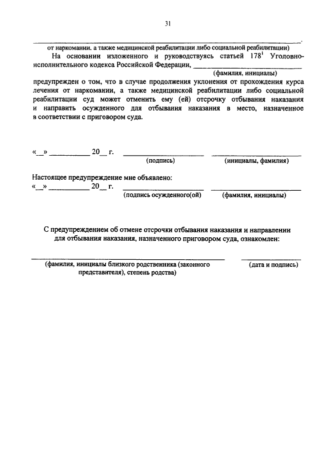 "ОБ УТВЕРЖДЕНИИ ПОРЯДКА ОСУЩЕСТВЛЕНИЯ КОНТРОЛЯ ЗА СОБЛЮДЕНИЕМ УСЛОВИЙ ОТСРОЧКИ ОТБЫВАНИЯ НАКАЗАНИЯ ОСУЖДЕННЫМИ, ПРИЗНАННЫМИ В УСТАНОВЛЕННОМ ПОРЯДКЕ БОЛЬНЫМИ НАРКОМАНИЕЙ"