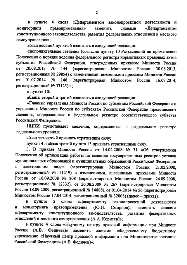 "О ВНЕСЕНИИ ИЗМЕНЕНИЙ В НЕКОТОРЫЕ ПРИКАЗЫ МИНЮСТА РОССИИ"