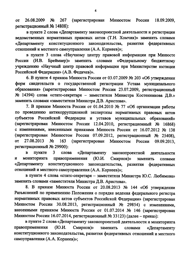 "О ВНЕСЕНИИ ИЗМЕНЕНИЙ В НЕКОТОРЫЕ ПРИКАЗЫ МИНЮСТА РОССИИ"