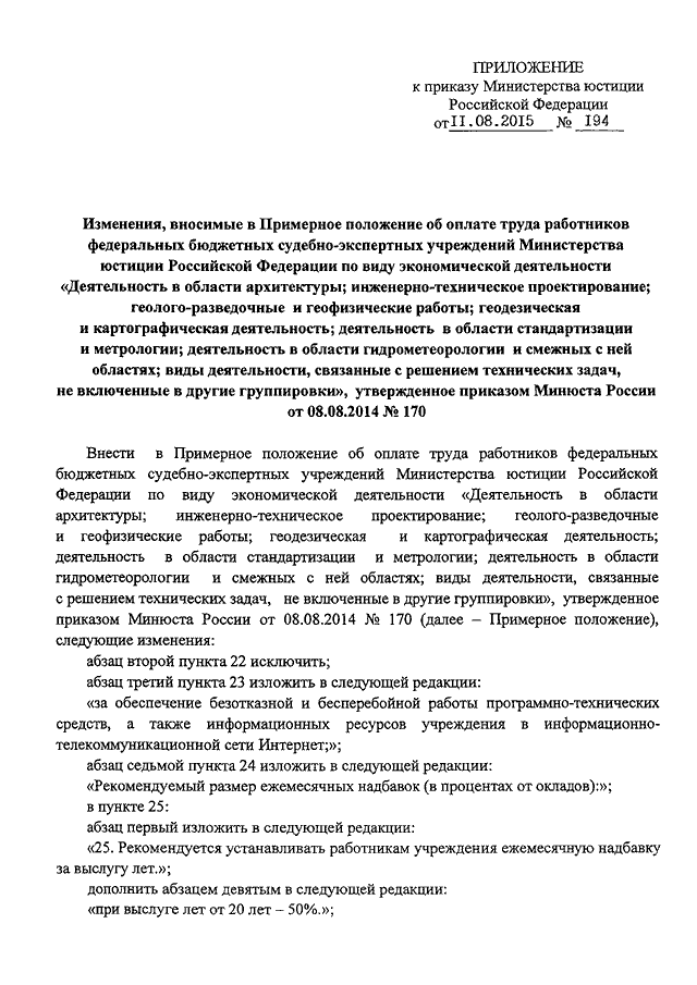 ПРИКАЗ Минюста РФ от 11.08.2015 N 194