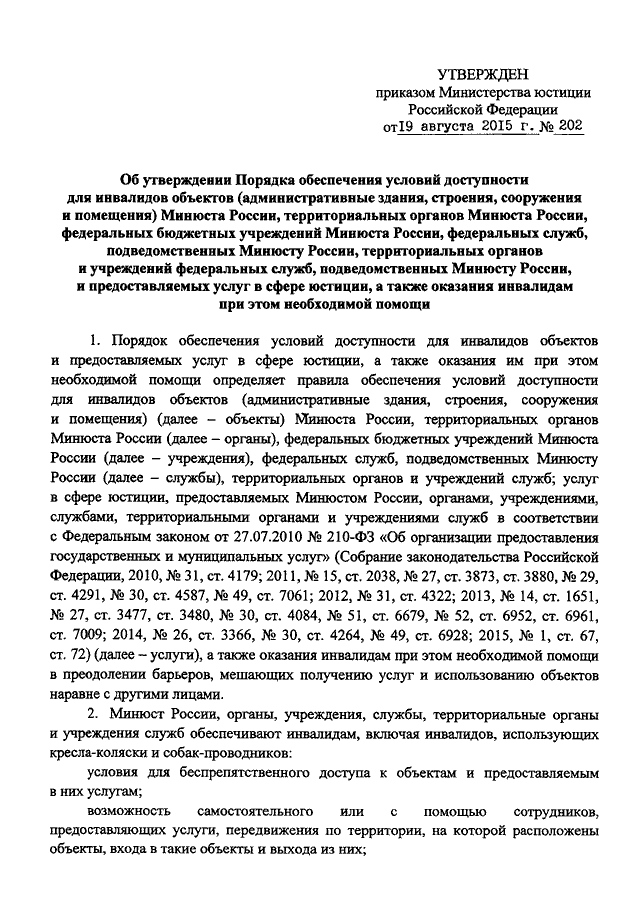 ПРИКАЗ Минюста РФ от 19.08.2015 N 202