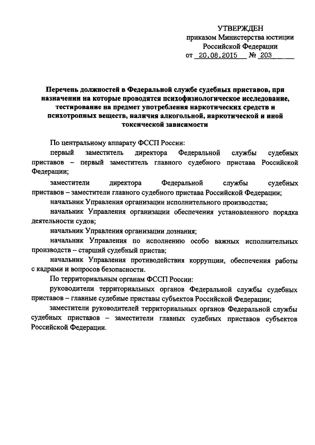 ПРИКАЗ Минюста РФ от 20.08.2015 N 203